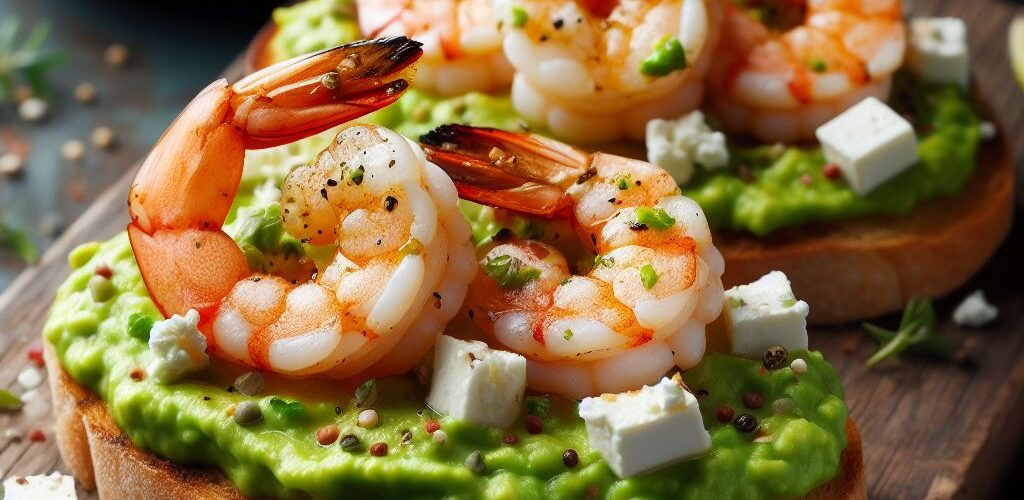 - Leg de gegrilde garnalen bovenop de broodjes en garneer met wat verkruimelde feta.